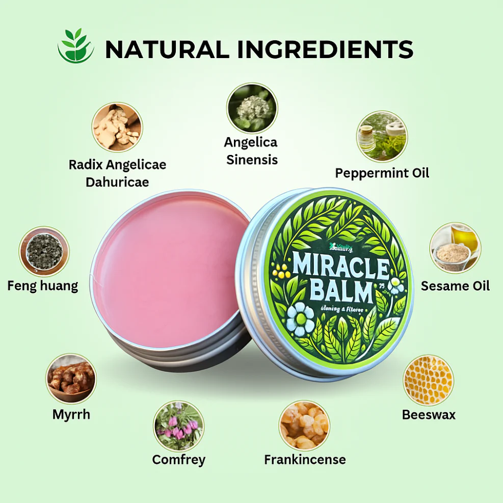 Miracle Balm is crafted with proven Asian botanicals like Comfrey, Angelica, and Frankincense, ingredients trusted for generations to reduce swelling, improve blood flow, and ease stiffness in the legs and feet.